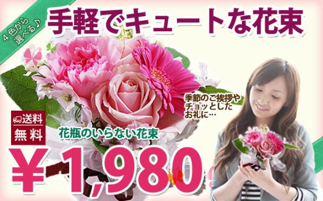 花ギフト 送料無料 花束 ブーケ 【キュートな花瓶の要らない花束】 ポイント消化 100円 300円 500円 花ギフト