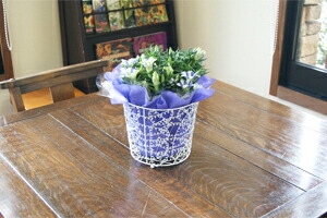 秋を代表する花「りんどう」の人気品種「白寿」を、上品な籠に入れてお届けします。白地にブルーのストライプが入る爽やかな花色は、気品ある雰囲気で贈り物に最適。無料ラッピング対応でそのままプレゼントできます。