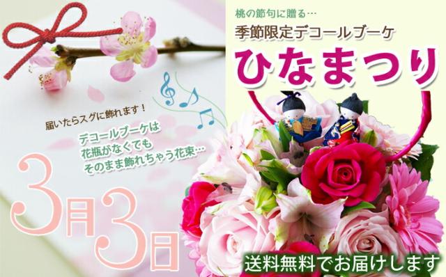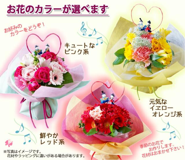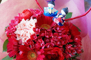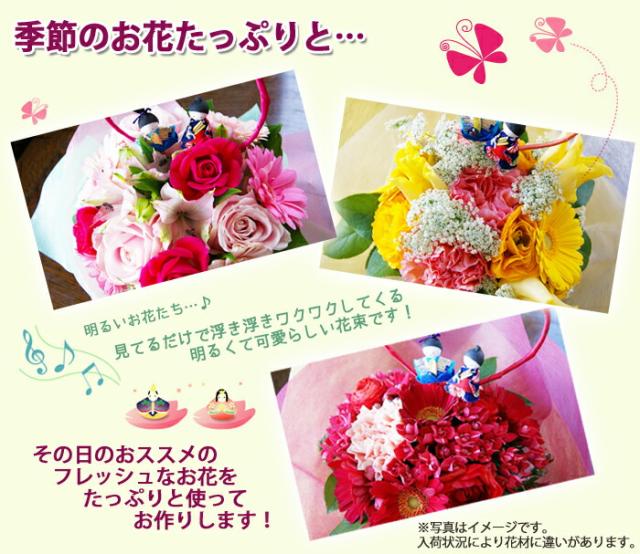 送料無料 ひな祭りの贈り物 花束お雛様ピック付