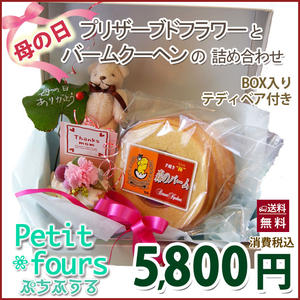 母の日プリザーブドフラワーとバームクーヘンの詰合せ 送料無料