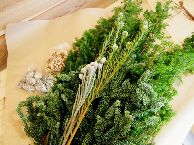 1、材料の下葉は取りますまとめるために下葉は10cmくらいは取ります。細かいものは先に別に束ねて紐で括っておくと作りやすいです。![]() | ||