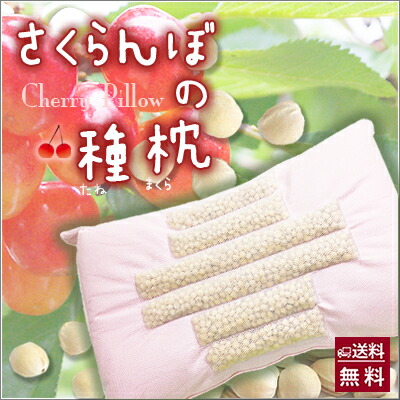 | 頭部が当たる部分に、山形県産のさくらんぼの種を使用しています。 さくらんぼの種の形状と適度な硬さが、頭や首に刺激を与えて気持ちが良い枕です。 | ||||