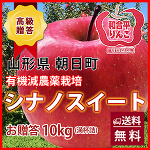 シナノスイート りんご 送料無料 リンゴ 国産 果物 葉取らずりんご 【 贈答用 朝日町 和合平シナノスイート 10kg 満杯詰め 10月上旬〜20日頃 】 有機減農薬栽培 山形 贈答 贈答用 蜜入りリンゴ 果実 農産物 ポイント消化 100円 300円 500円