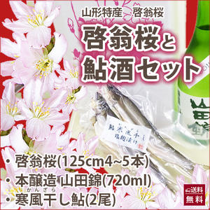 最高品質の山形県産の啓翁桜と山形の旨い地酒、そして、珍しい冬限定の天然鮎の寒風干しを