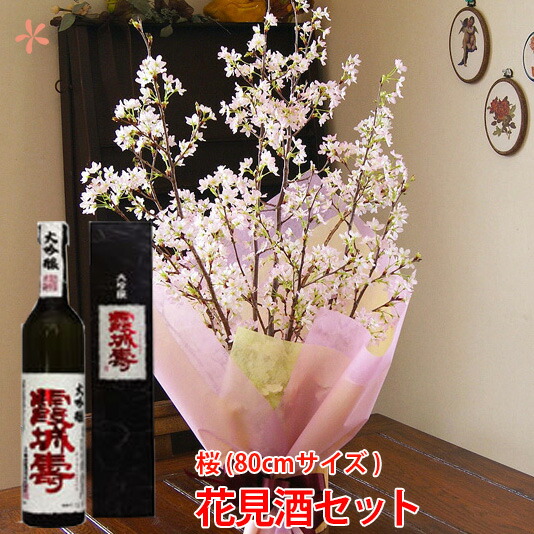 啓翁桜 桜 花束 山形 卒業 お花見 桜と日本酒 花見酒セット 日本酒 寿虎屋酒造 出羽桜酒造 桜花吟醸酒 花見酒セット120cm 豪快に飾れるサイズ 4〜5本 お歳暮 自宅でお花見 送別 花束 プレゼント 送料無料 誕生日 結婚記念日 フラワーギフト 花ギフト けいおう桜