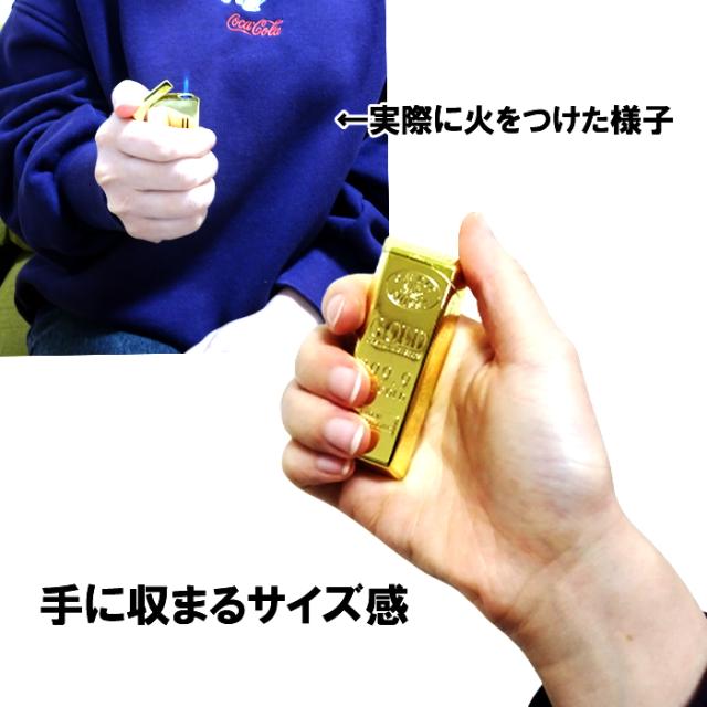 今までにありそうでなかった金の延べ棒デザインの金ぴかでゴージャスかつユニークなライターです。