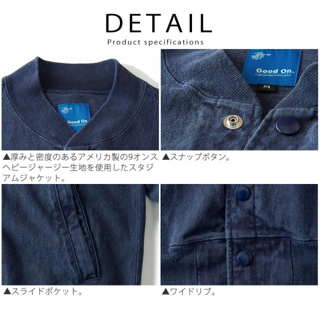 GOOD ON グッドオン スタジアムジャケット ヘビージャージー スウェット ( GOLT2002 ) 長袖 ピグメントダイ スナップボタン カーディガン ロングスリーブ 後染め メンズ レディース コットン アメカジ ワンマイルウェア おしゃれ アーベン 普段使い 実用的 定番