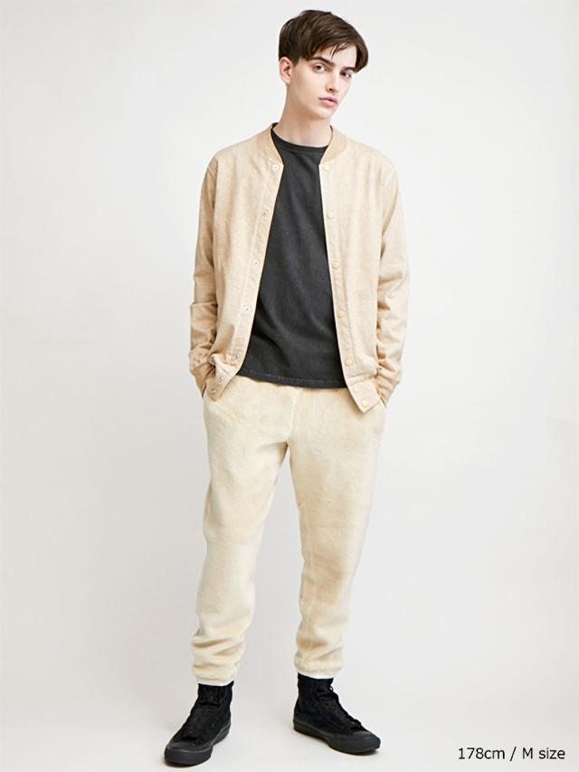 また、厚手の生地特有の凹凸に色の濃淡が際立つPigment Dye(顔料染め)による製品染めは 他にはない味のある表情が特徴で、洗濯の度に表面から徐々に色褪せしさらに風合いを増していくので、長く愛用するほどに上質なビンテージ品のように印象が変わっていきます。