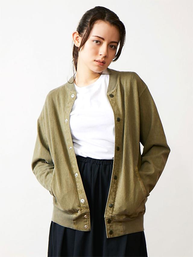 厚みと密度のあるアメリカ製の9オンスヘビージャージー生地を使用したスタジアムジャケット。