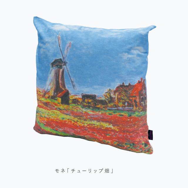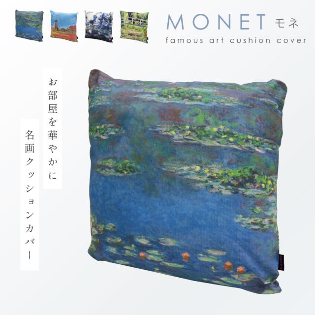 名画 グッズ クッションカバー アート 45×45cm 北欧 絵画 有名画家 アンティーク おしゃれ モダン インテリア 雑貨 名画クッションカバー モネ Monet 睡蓮 睡蓮の池と日本の橋 睡蓮II チューリップ畑 メール便対応