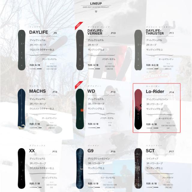 [予約商品] 26-27 スクーター スノーボード SCOOTER LO-Rider ローライダー 147cm 150cm 153cm 156cm 159cm 馬淵学 パウダー トリック スノボ 板 日本正規品 2026 2027