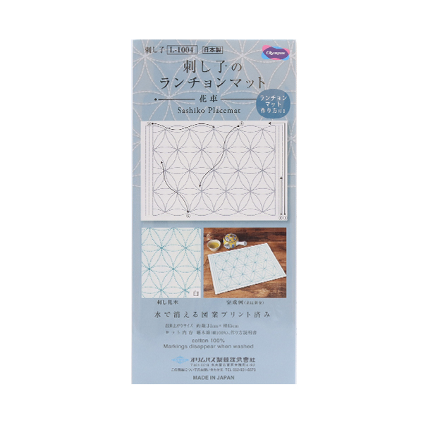 刺しゅう布 『刺し子 ランチョンマット 布パック 花車 白 L-1004』 Olympus オリムパス