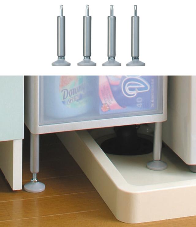 別売りのアジャスターを使用すると、段差があって足場が不安定な隙間や、コンセント洗濯バンをまたいでの使用が可能になり、さらに充実した使い方を楽しむことができます。アジャスターは1本ずつ高さ10〜12.5cmの調節が可能です。
