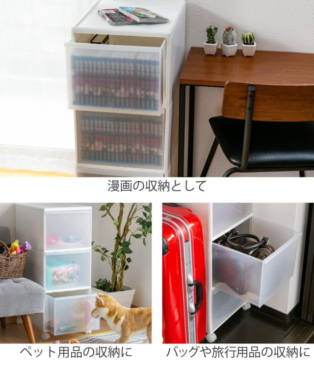 漫画の収納やペット用品の収納、バッグや旅行用品の収納など…、ワイドストッカーはアイディア次第で様々なシーンで便利に活用できます。