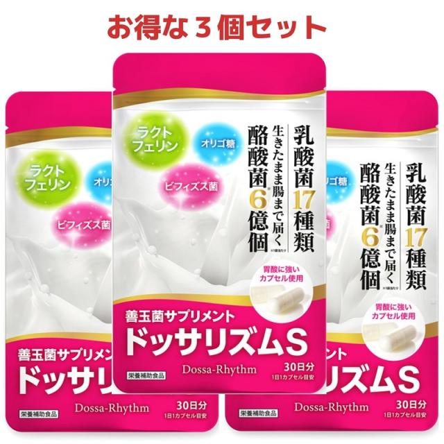 【お得な3個セット】 酪酸菌 ドッサリズムS 善玉菌 サプリメント 乳酸菌 ラクトフェリン ビフィズス菌 カプセル 30日分 ×3