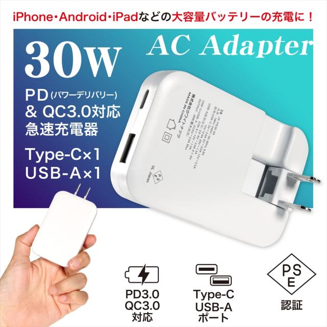 急速充電器 充電器 Type-C タイプC コンセント USBポート付き 急速 アンドロイド USB 2台同時充電 パソコン スマホ 20W ACアダプター スマートフォン充電 家庭用電源 AC電源 ホワイト