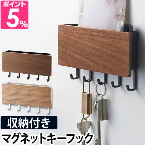 ホルダー付きマグネットキーフック RIN リン 山崎実業 YAMAZAKI キーフック マグネット 木製 玄関ドア 玄関 扉 戸 おしゃれ 北欧 鍵 エントランス 壁掛け ウォール フック 印鑑 収納 ホワイト 白 ブラック 黒