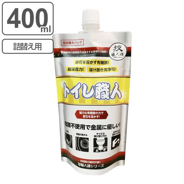 【ガイアの夜明けで紹介】詰め替え用 トイレ洗剤 400ml トイレ職人 技職人魂 業務用 ( 買い替え 詰替 パウチ 業務用洗剤 酸性 トイレ掃除 尿石 黒ずみ 汚れ トイレ用洗剤 尿石落とし 便所 手洗い 黒ズミ 強力 頑固 落とす 溶かす )