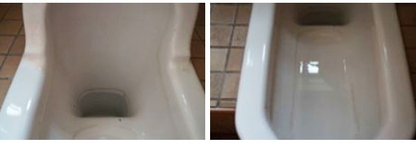 トイレ職人は、有機酸の最上級に強いものを使用し、金属やその他にダメージ無く汚れを完全に落とします。劇薬ではないため、スプレーの限界まで酸濃度を強くすることができるので、塩酸以上の効果を発揮できます。
