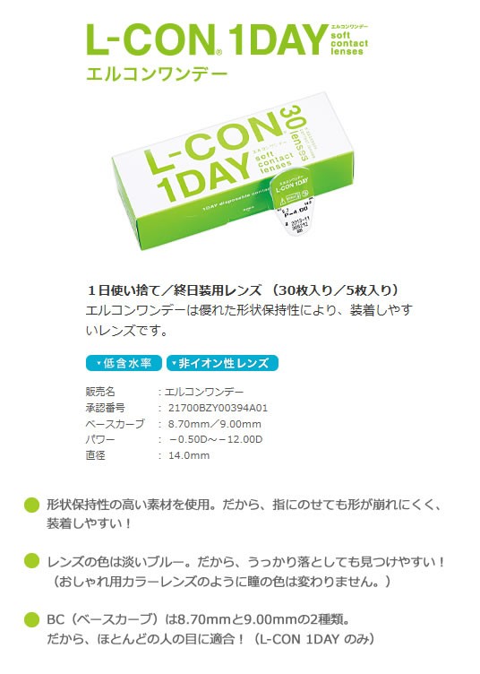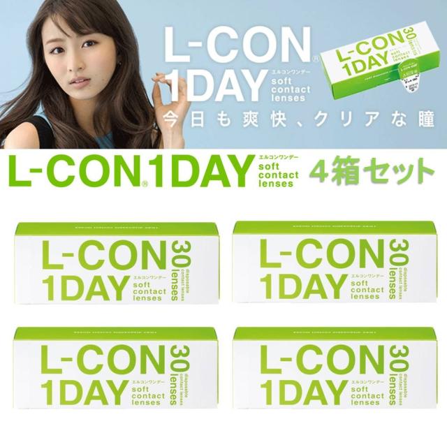 4箱セット L-CON 1DAY エルコンワンデー 14.0mm 透明 コンタクト レンズ BC8.7mm BC9.00mm ワンデー 1日 使い捨て 度あり