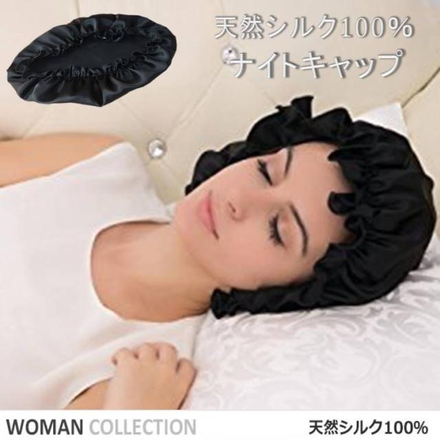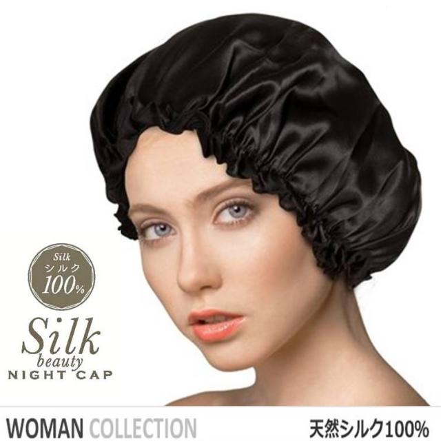 送料無料 ブラック 天然 シルク ナイト キャップ 就寝用 帽子 室内 おススメ 超人気 美髪 うるつや さらさら髪 切れ毛 枝毛 白髪 艶髪
