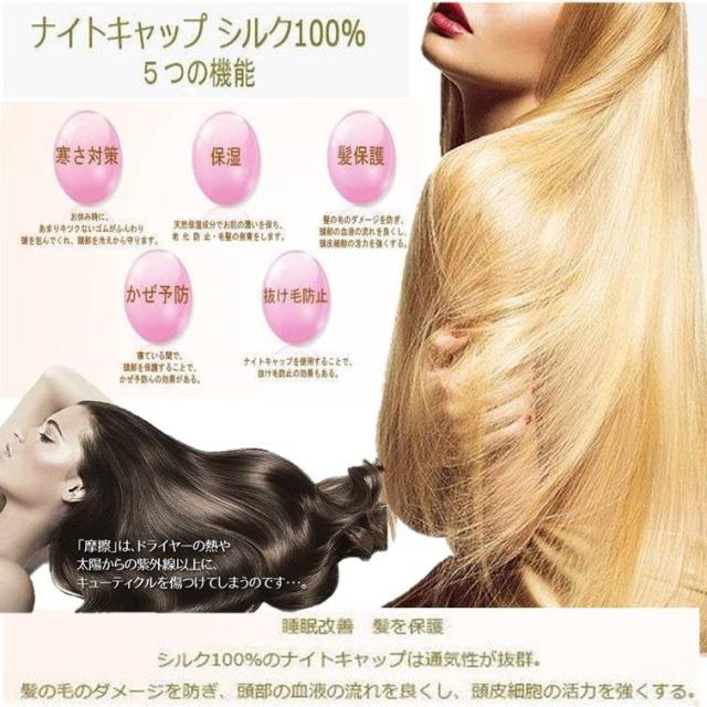 ☆シルクナイトキャップは室内・就寝用の帽子として、保湿性に優れ、摩擦と静電気を阻止、保護してくれるので