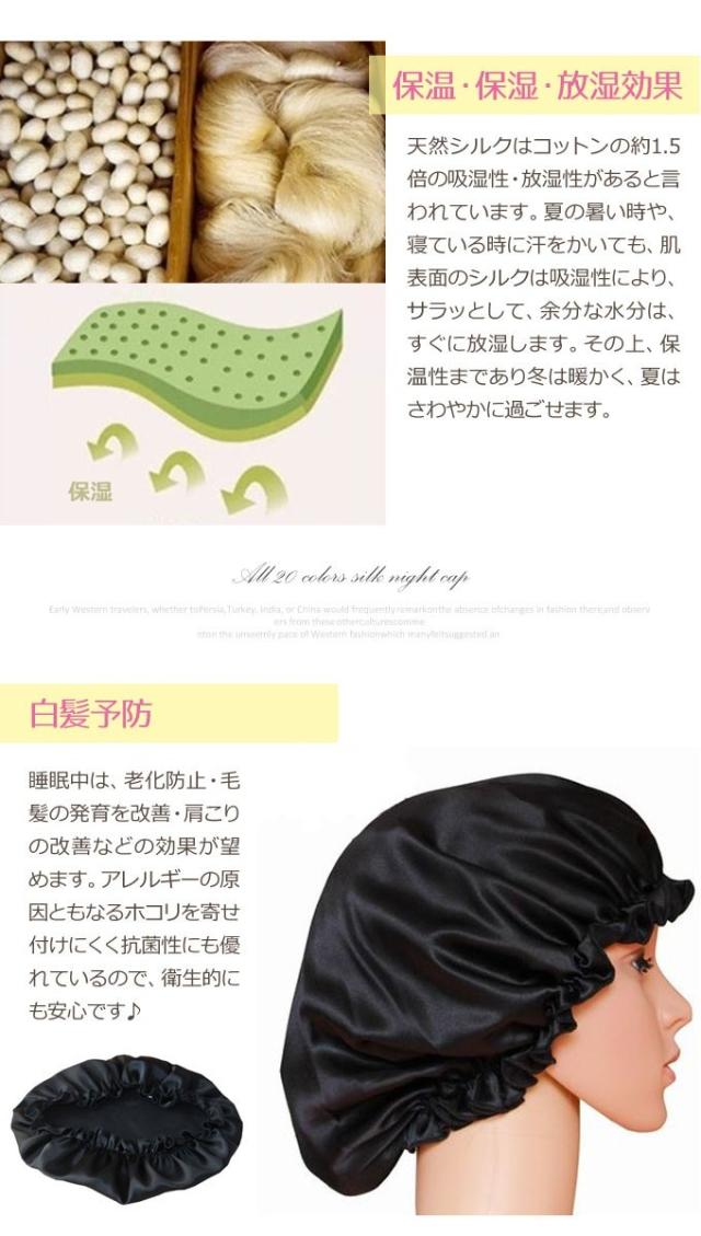 天然シルク100% シルク ナイトキャップ 就寝用帽子 室内帽子 おススメ 超人気