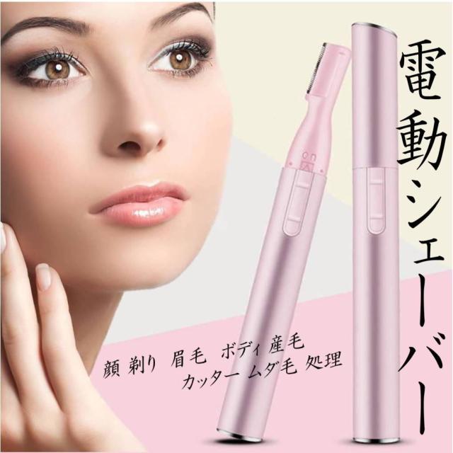 送料無料 レディース シェーバー 電動 顔 剃り フェイス トリマー 眉毛 顔 ボディ 産毛 カッター ムダ毛 処理 乾電池式 かみそり