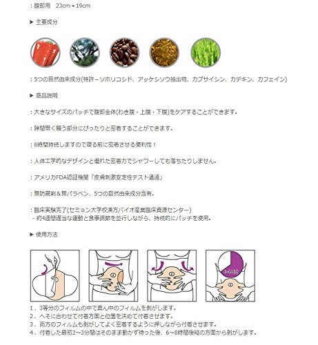 ●大きなサイズのパッチで腹部全体に(わき腹・上腹・下腹)ぴったりと密着し、シャワーを浴びても剥がれにくい!