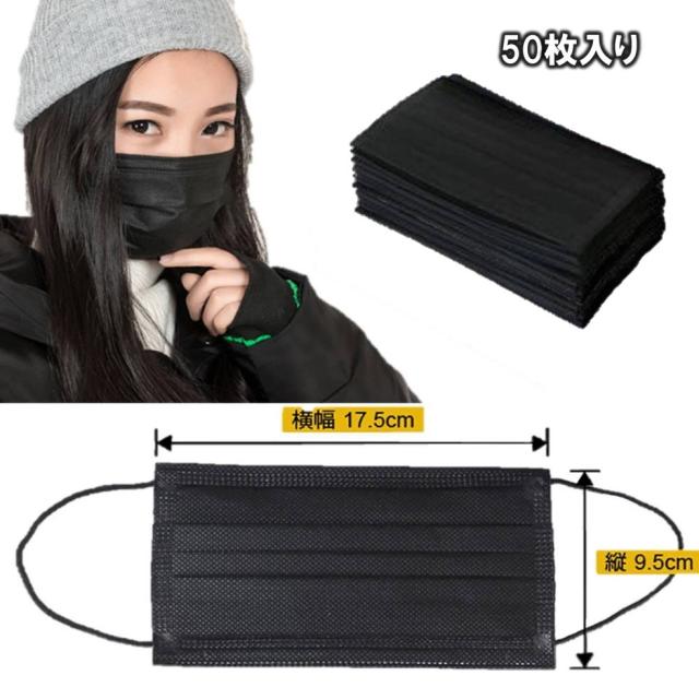 黒マスク ブラックマスク 使い捨て 50枚入り セット 人気で話題 不織布マスク