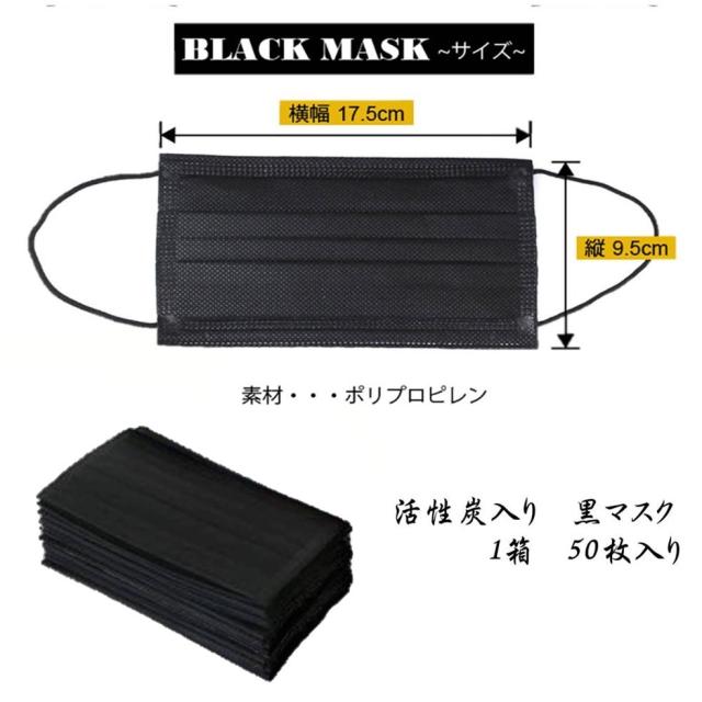 黒マスク 活性炭 三層 使い捨て 50枚 入り セット