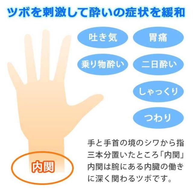突起が船酔いのツボを押さえ酔いを防ぎムカつきを押さえます。
