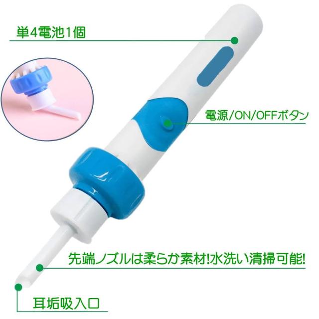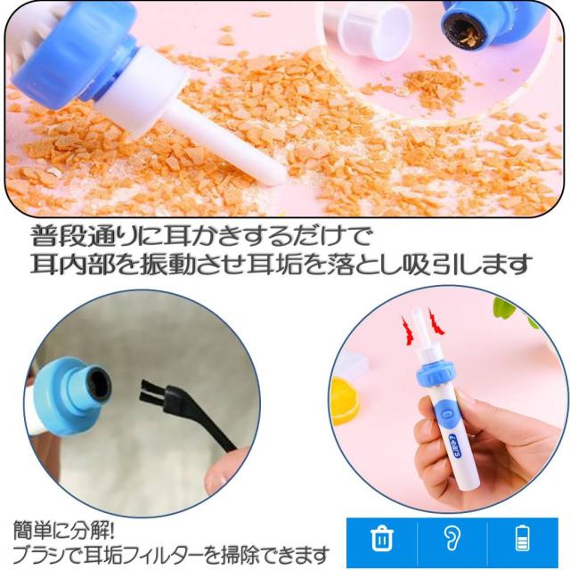 みみきれい 電動 耳かき イヤー クリーナー 収納ケース付き 洗浄 振動&吸引式耳垢吸引機 耳掃除 電池式 吸引 耳 すっきり 耳垢 除去キット