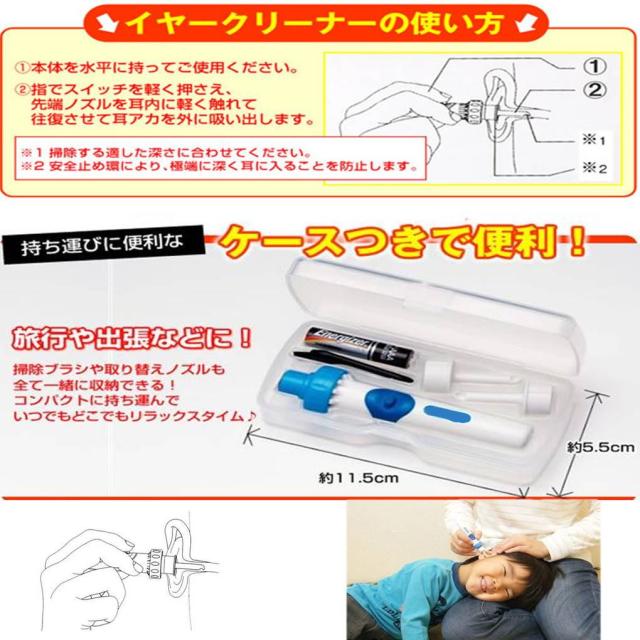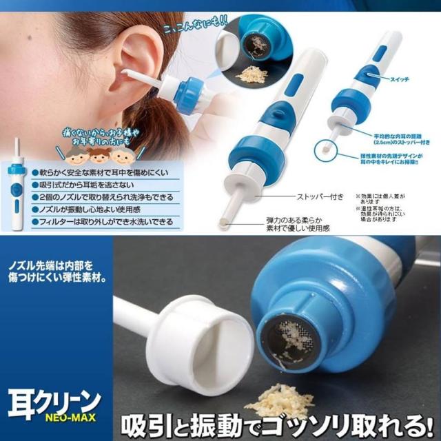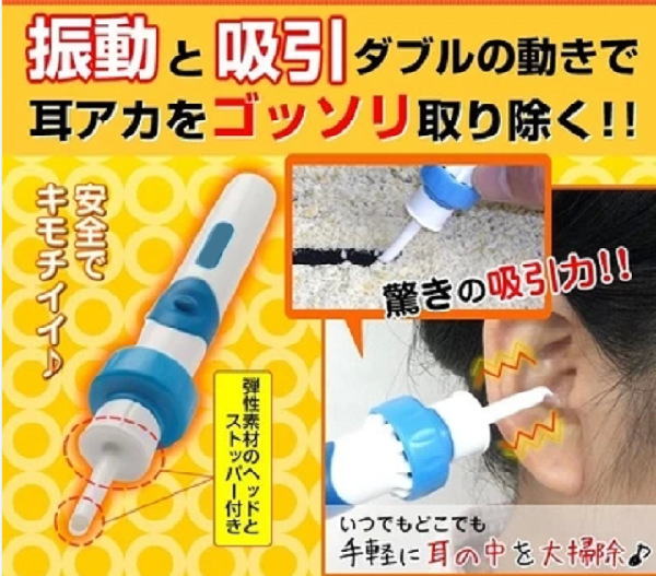 ☆洗浄 振動&吸引式耳垢吸引機 耳掃除 電池式 吸引 耳 すっきり 耳垢 除去キット☆