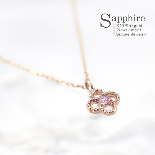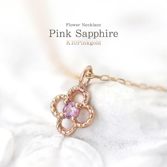 ピンクサファイア ネックレス レディース ピンクゴールド 宝石 10金 K10 10K フラワー 花 小ぶり かわいい ピンク サファイア 9月 誕生石 誕生日 プレゼント ジュエリー アクセサリー 本物 ピンク色 記念日 女性 妻 嫁 小さめ おしゃれ 可愛い 天然石 クリスマスプレゼント