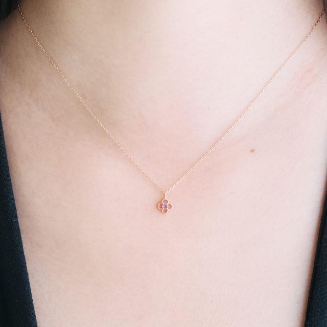 | サイズ | ・カット小豆チェーン:約40cm(約36cmでもお使い頂けます。) ・フラワー:約5mm ・ピンクサファイア:約2mm |