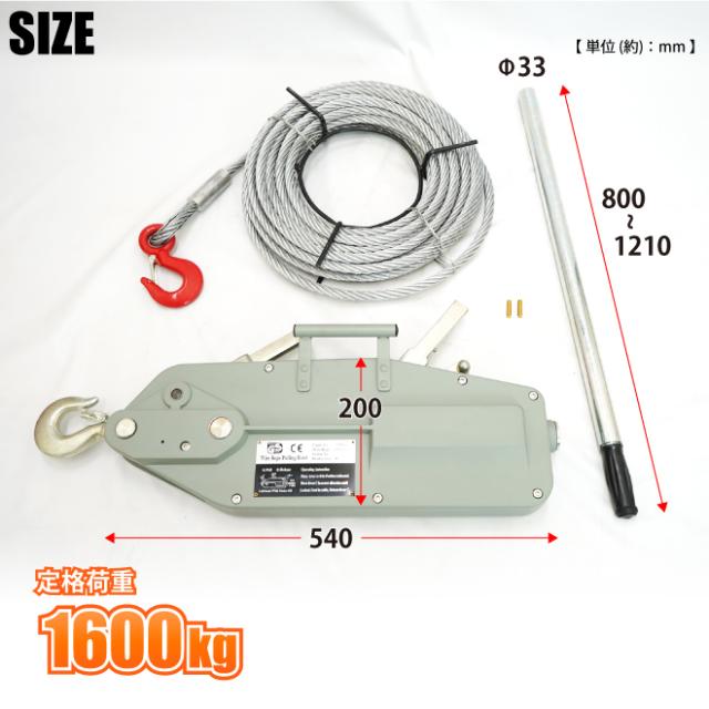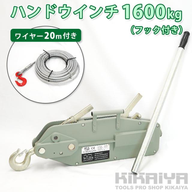 ハンドウインチ 1600kg ワイヤーロープ20m付 手動ウィンチ 万能携帯ウインチ レバーホイスト KIKAIYA