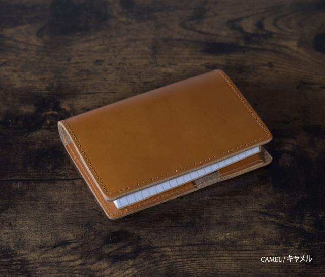 栃木レザー社製のフルベジタブルタンニングレザーを使用したメモ帳カバーと