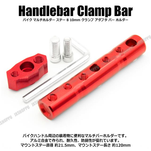 バイク マルチホルダー [レッド] ステー 8 10mm クランプ アダプタ バー ホルダー スマホホルダー クランプバー グッズ 固定 送料無料