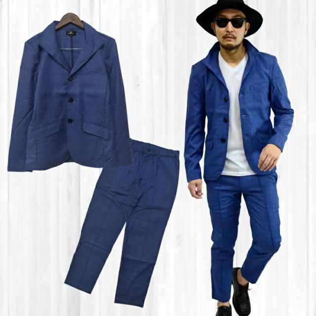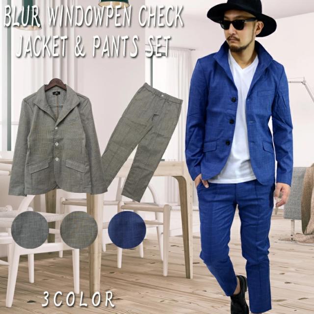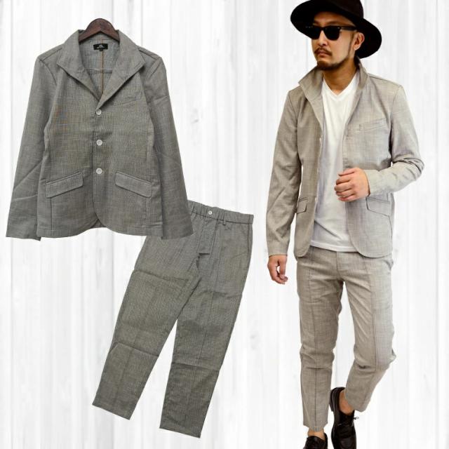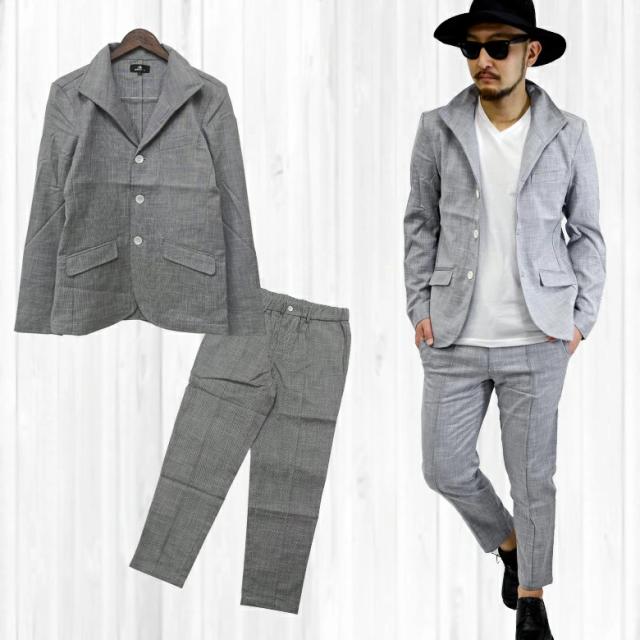 【閉店セール】メンズ セットアップ ジャケット イタリアンカラー パンツ 1759-62 かすれ ウィンドウペン チェック かすれウィンドウペンイタリアンカラージャケット&パンツ メンズ 羽織 きれいめ カジュアル M L XL 上下セット スーツ カジュアルスーツ