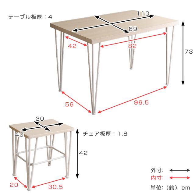 | サイズ | テーブル:約 幅110×奥行69×高さ73(cm) チェア:約 幅40×奥行30×高さ42(cm) |
