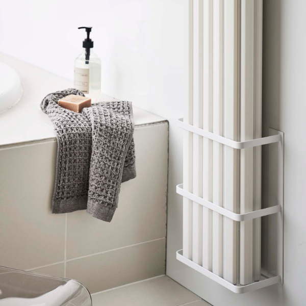 マグネットで簡単に取り付けられて、邪魔になりがちな風呂蓋を立て掛けておけるホルダーです。浮かせて収納するので、浴室を広く使えてスッキリします。