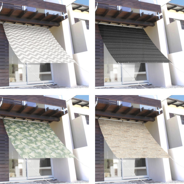 お部屋やテラスでの日差し対策に便利なオーニングです。外からの視線も遮り、プライバシーも守れます。上下ハトメ加工で、付属のロープを使って色々な場所に取り付け出来ます。