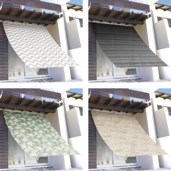 透け感がある生地を使用し、外の心地よい風が室内に入ります。レンガ柄で味わいのあるリアルなデザインで、お庭やテラスの景観を損なわずに使えます。