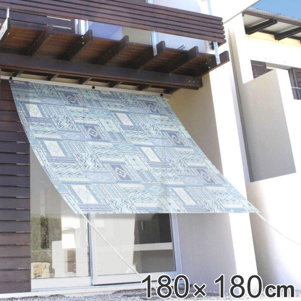 日よけ 光が入るオーニング パッチワークキリム 180x180cm 日本製 日よけ名人 UVカット 透過 遮熱 暑さ対策 ( サンシェード 日除け 目隠し シェード ハトメ加工 ロープ付き 省エネ 日差し エコ ベランダ ガーデン 庭 )