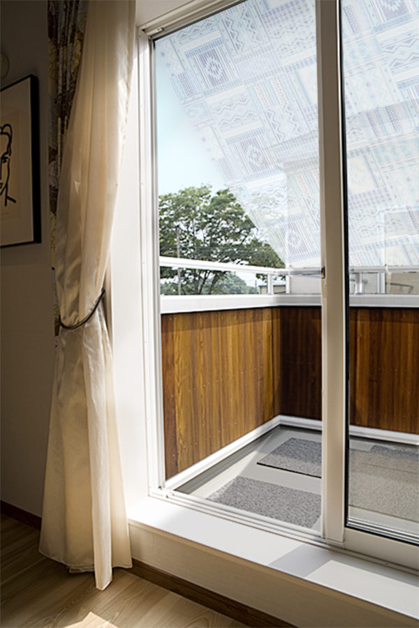 UVカット率の高い生地なので、強い日差しを遮ります。適度に光が入るので室内が暗くなりません。中からも柄が見えるタイプです。