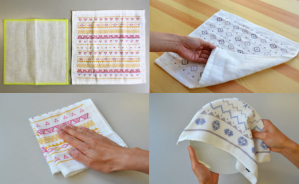 男性など手の大きな方も扱いやすい、34×34cmの大判サイズです。拭きにくい大皿なども、広げて包み込むように拭くことができます。