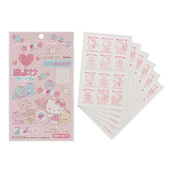 虫除けシール 72枚入 ハローキティ もふもふタイニーチャム アウトドア ( キティ 虫よけシール ユーカリ油配合 虫対策グッズ 虫除け用品 貼るだけ シールタイプ 虫除け 虫よけ シール 天然成分配合 子供用 キャラクター 日本製 )