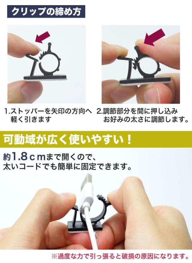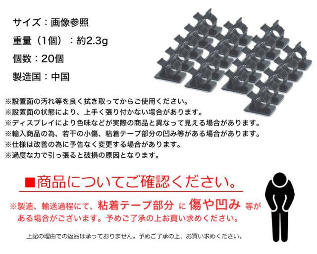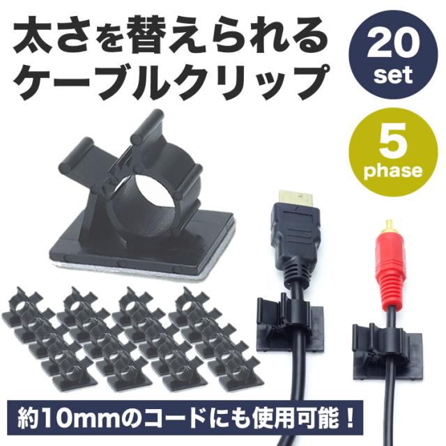 20個セット ケーブルクリップ 太さが替えられる 可変 調節可能 ケーブルホルダー デスク PC 収納 両面テープ 整頓 コード 固定 整理 ストッパー 配線管理 PR-XC-0810 【メール便 送料無料】