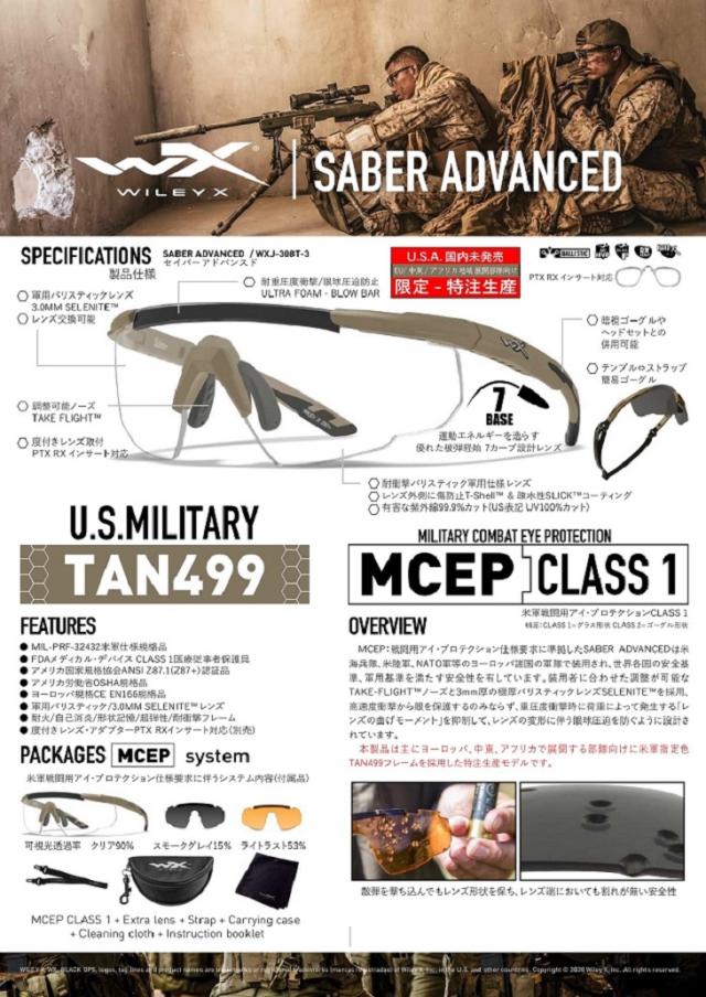 米軍戦闘用アイ・プロテクション「SABER ADVANCED」の米国未発売モデル、米軍公式指定カラーTANフレームバージョンです。本製品はワイリーエックスEMEA(EU支社)がEU諸国,アフリカ,NATO軍,一部米部隊向けに販売している特注生産モデルですが、この度、日本国内で数量限定にて販売いたします。